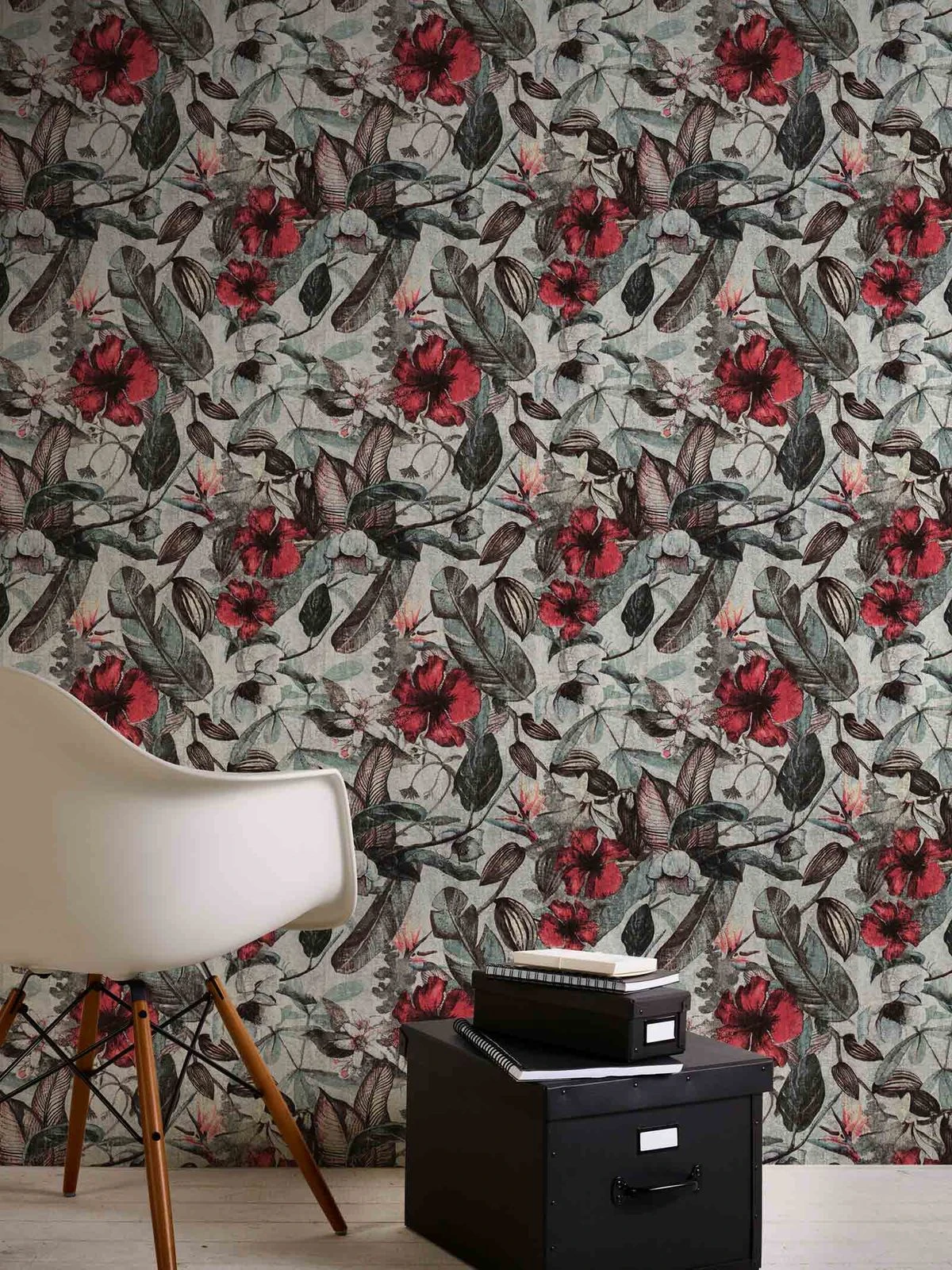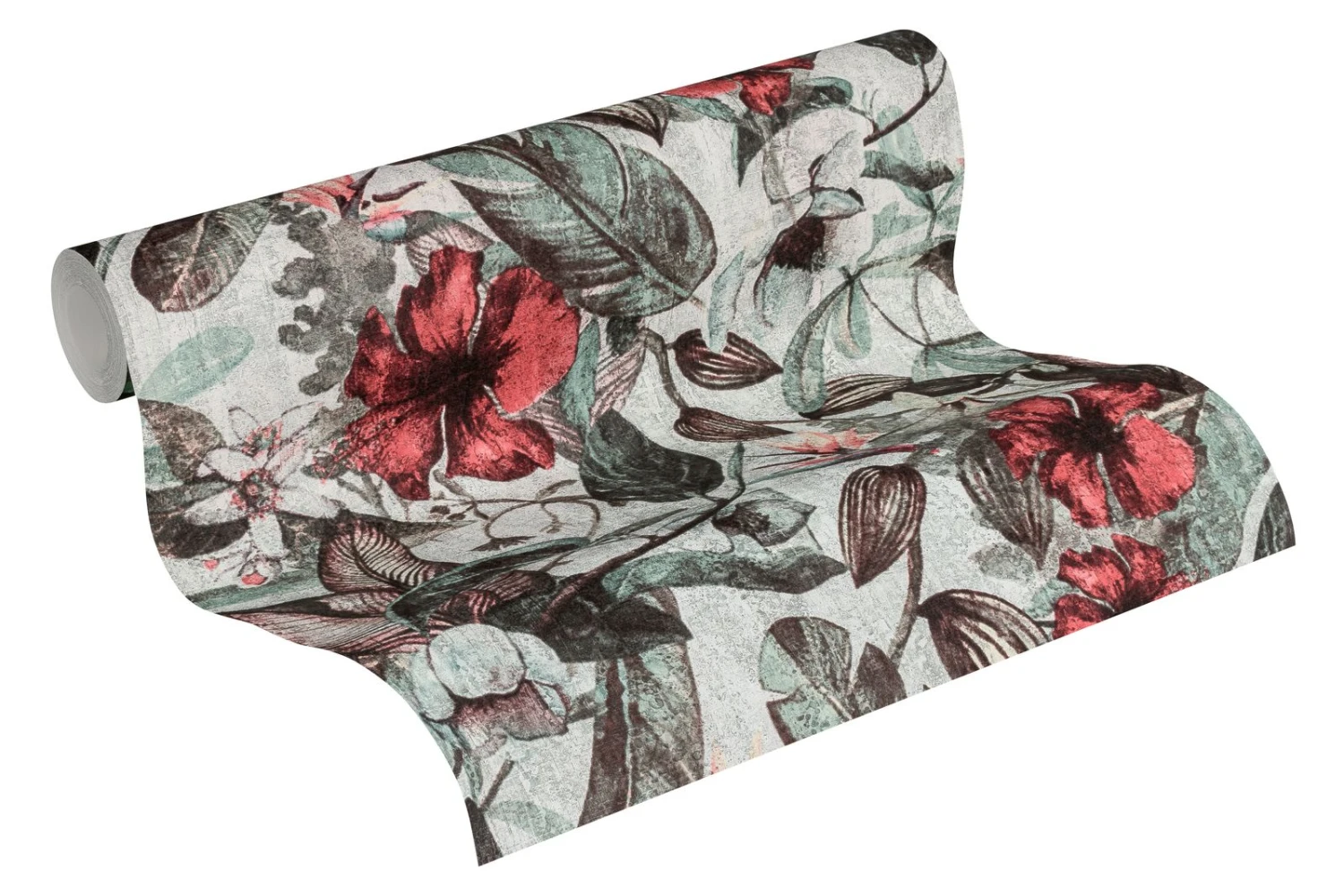 Tapete Vlies Dschungel Blumen grau grün AS Creation Greenery 37216-1 | 372161