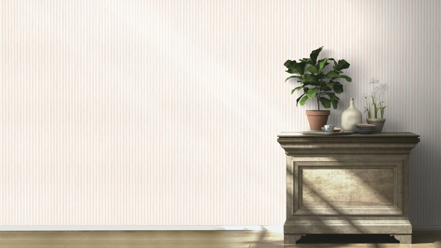 Auf Streife: Mit hellrosa Wasserfarben kann es direkt losgehen! Dabei muss das Muster nicht mit Lineal gezeichnet sein, vielmehr erhält es durch einen ruhigen Pinselstrich einen schönen, individuellen Charakter. Der Vorteil am Streifenlook: er ist wunderbar zeitlos und darf auch nach Jahren im Kinderzimmer mitspielen.