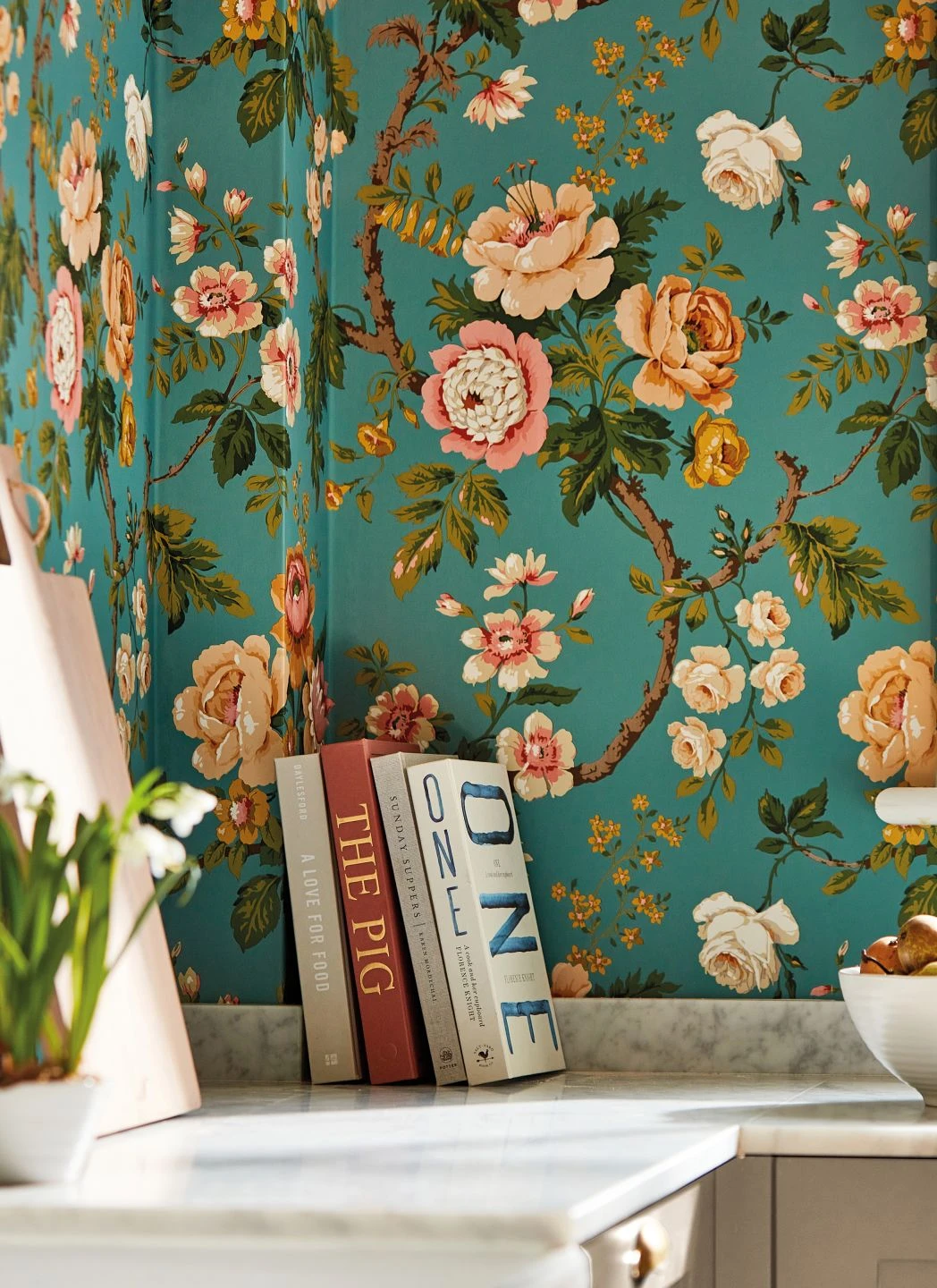 Reich geschmückt mit Blüten, deren Honiggelb, Ocker und Rosa sich kontrastreich vom intensiven Türkisblau des Untergrunds abhebt, bringt Amalfi Ihnen den niemals endenden Sommer ins Haus. Wirkungsvolle Farbschattierungen und cremefarbene Akzente betonen die Gestalt der vollen, leuchtenden Blüten, die an kräftigen Zweigen wachsen. Dazwischen sorgen frische, grüne Blätter für Abwechslung.