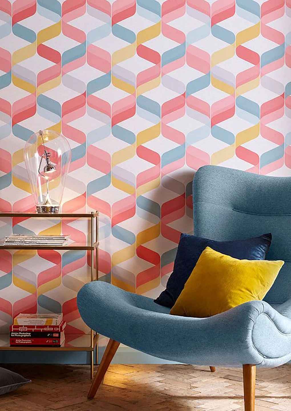 Kreativbüro, Lounge, Küche oder Kinderzimmer – Azuli im pastellbunten Retro-Rautenmuster, das sich schwungvoll an der Wand entlangschlängelt, macht einfach nur Spaß. Es lässt den Tag leben und stiftet zu neuen verrückten oder guten Taten an, lädt zu Fantasiereisen ein oder ruft zu interessanten Projekten auf.