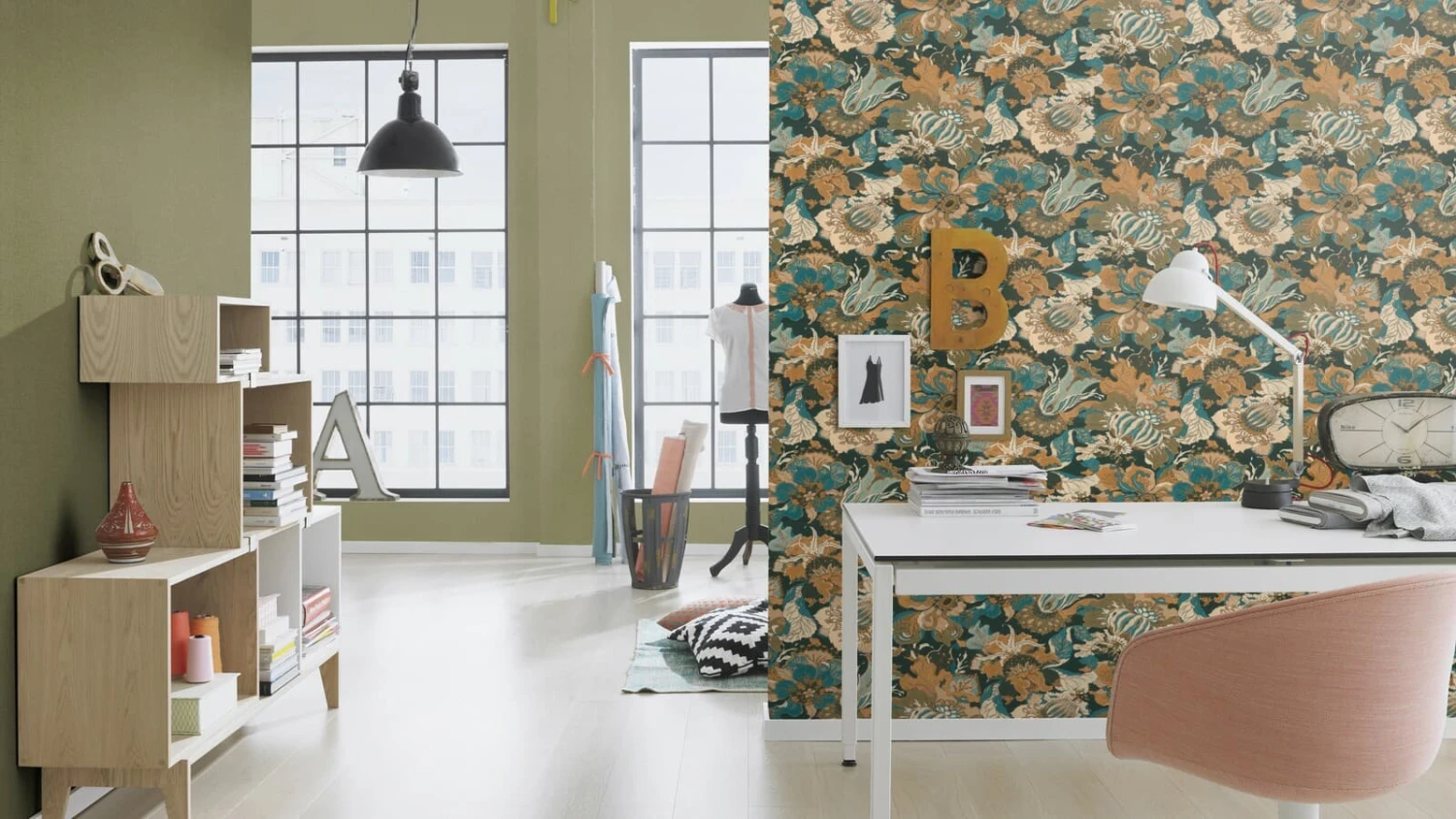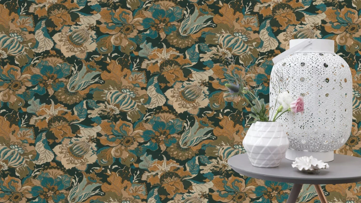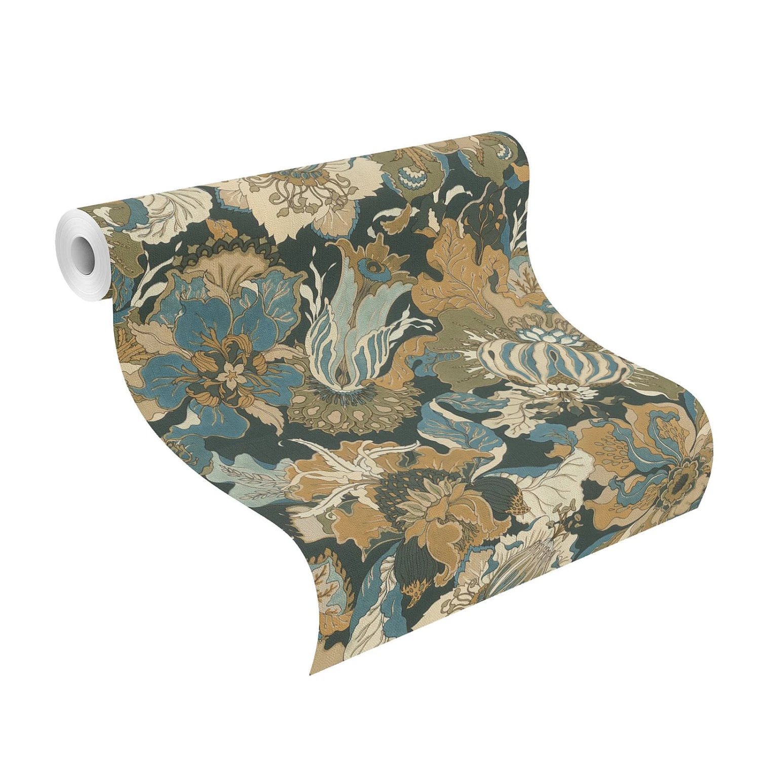 Tapete Barbara Home Collection Blüten Dunkelgrün-Blau