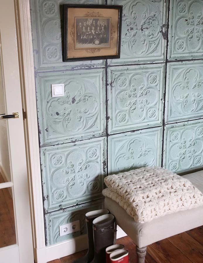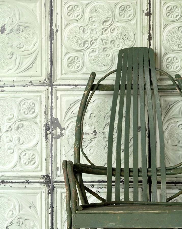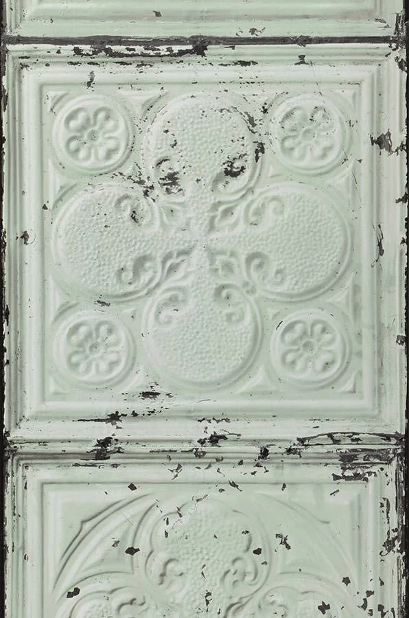 Ein seltenes Weißgrün färbt die Emaille-Kachel-Imitation auf dieser ausgefallenen Vliestapete. Der Digitaldruck perfektioniert die Imitation bis hin zum in das Metall eingeprägten verspielten Muster, das man fast zu spüren glaubt. Abgeplatzte Stellen und Verfärbungen zeugen vom Alter der Kacheln, in deren Abbildung auf der Tapete sich keine Stelle wiederholt. Mit der Tapete des niederländischen Designers NLXL führen Sie den Industrial Look oder den Shabby Chic zur Vollendung.