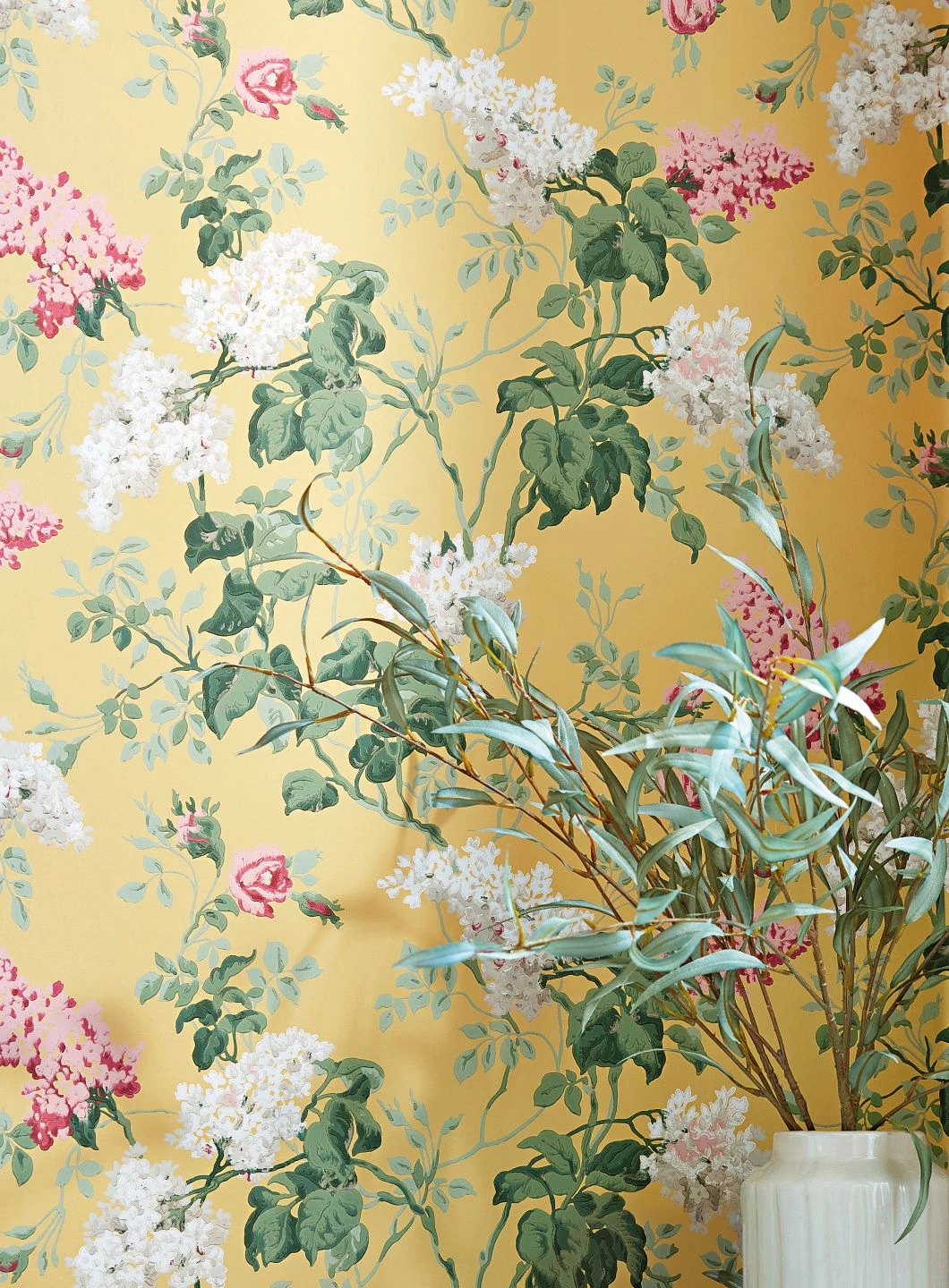 Sonnenschein und Blütenduft ziehen mit der kostbaren Vliestapete Colbert in Ihr Zuhause ein – egal welche Jahreszeit draußen herrscht! Die Zweige von weißem und rosafarbenem Flieder und die Blüten und Knospen der Rosen erzählen von warmen Frühsommertagen. Das sonnige Hellgelb des Untergrunds durchflutet Ihren Raum mit Licht. Der Musteraufdruck trägt die unverkennbare Charakteristik des traditionsreichen Leimdruckverfahrens.