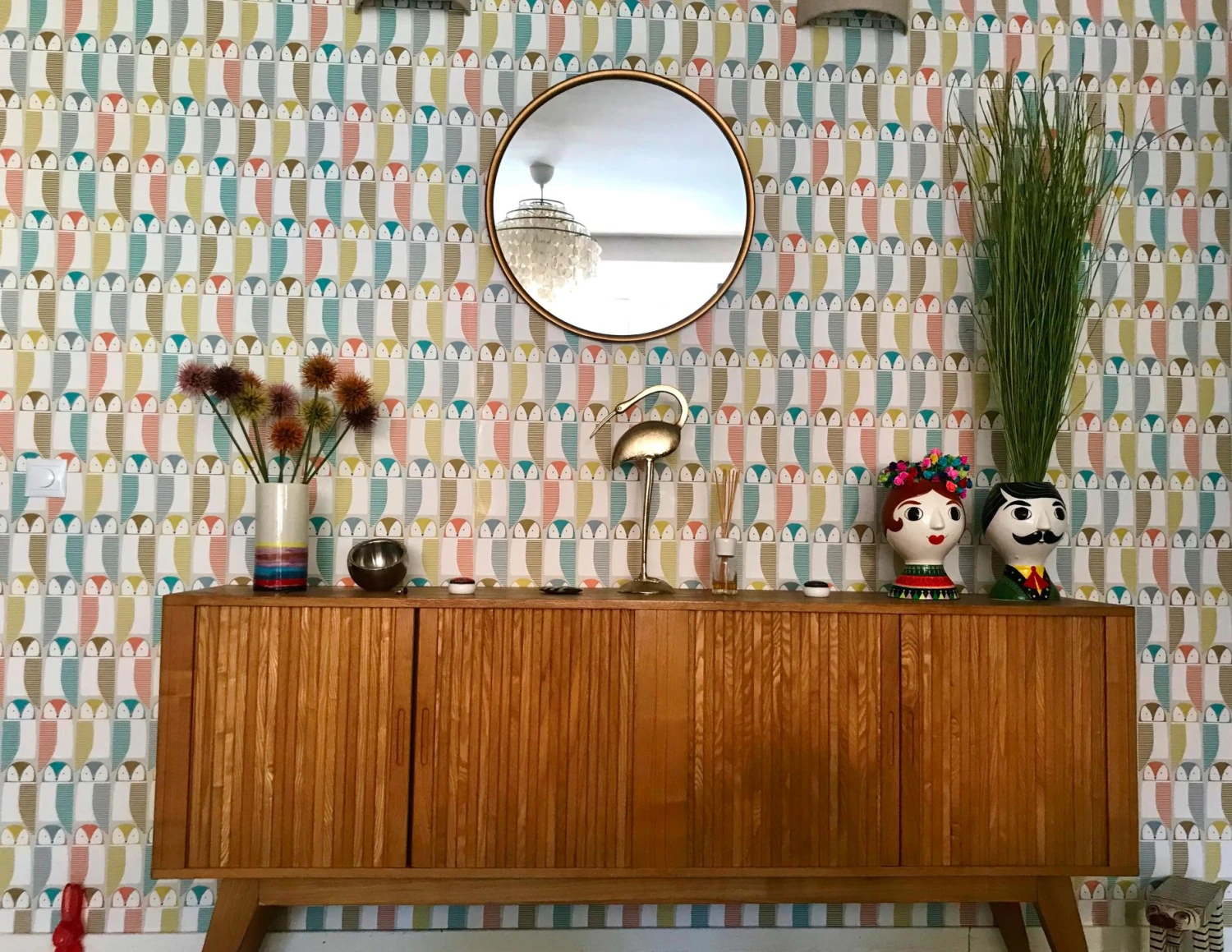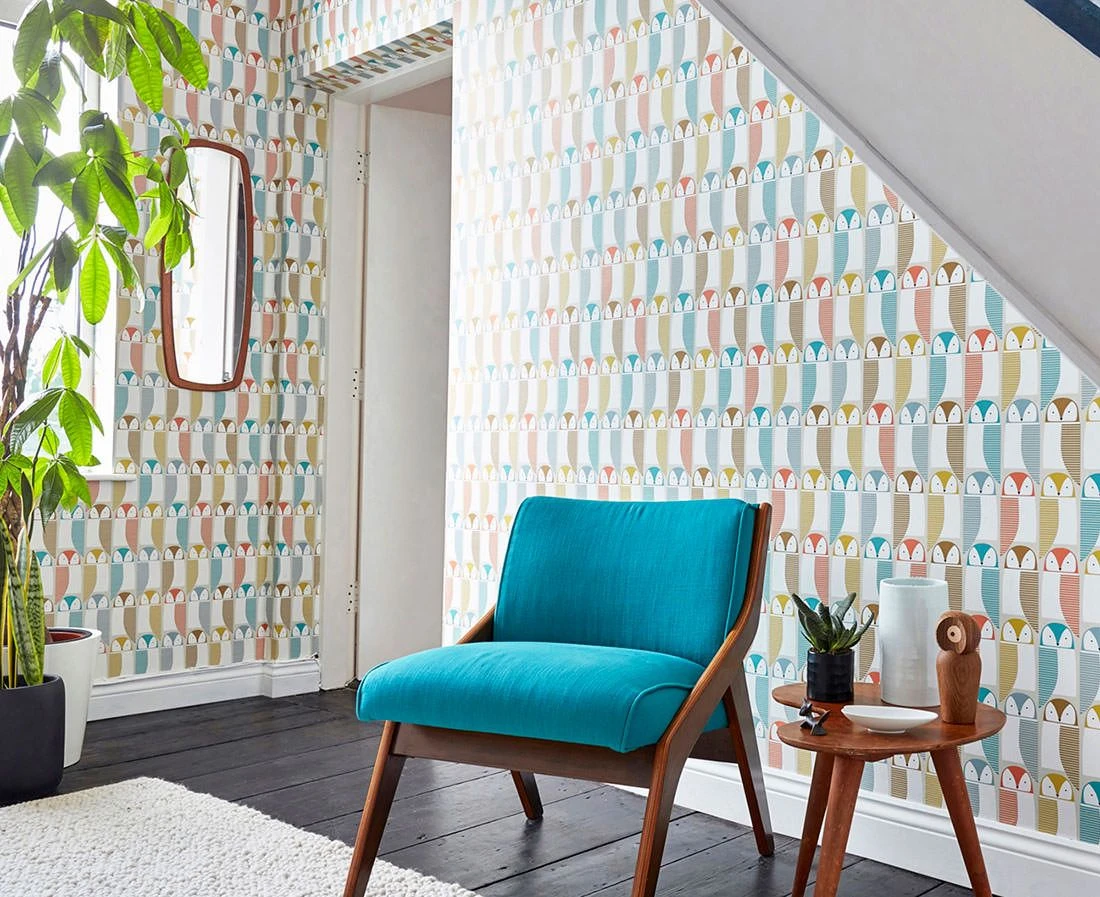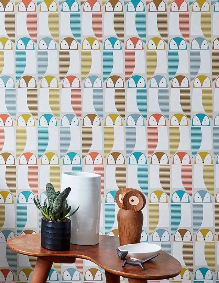 Diese Eulenparade hat es in sich. Vintage Tapeten der Moderne mixen Geometrie und Gegenständliches und bilden daraus einmalige Design Schmuckstücke für die Wand. Erleben Sie die außergewöhnliche Wirkung in Diele, Flur, Kinderzimmer oder als witzige Idee für das Gäste-WC. Auf diese Eulen muss man einfach schauen.