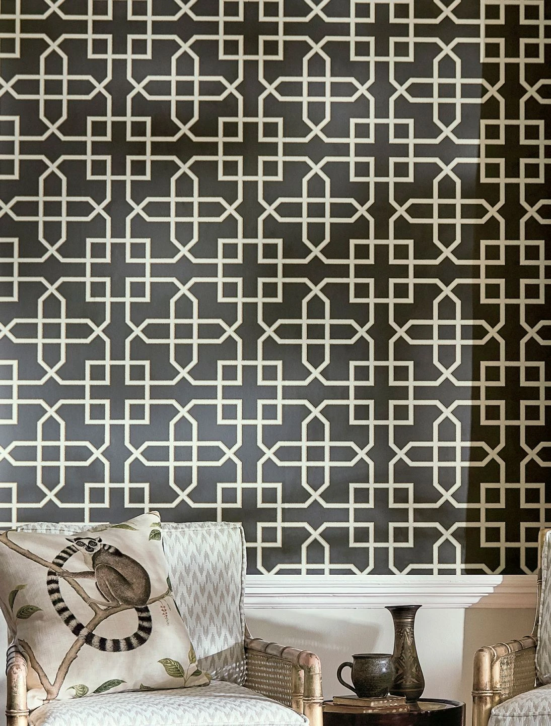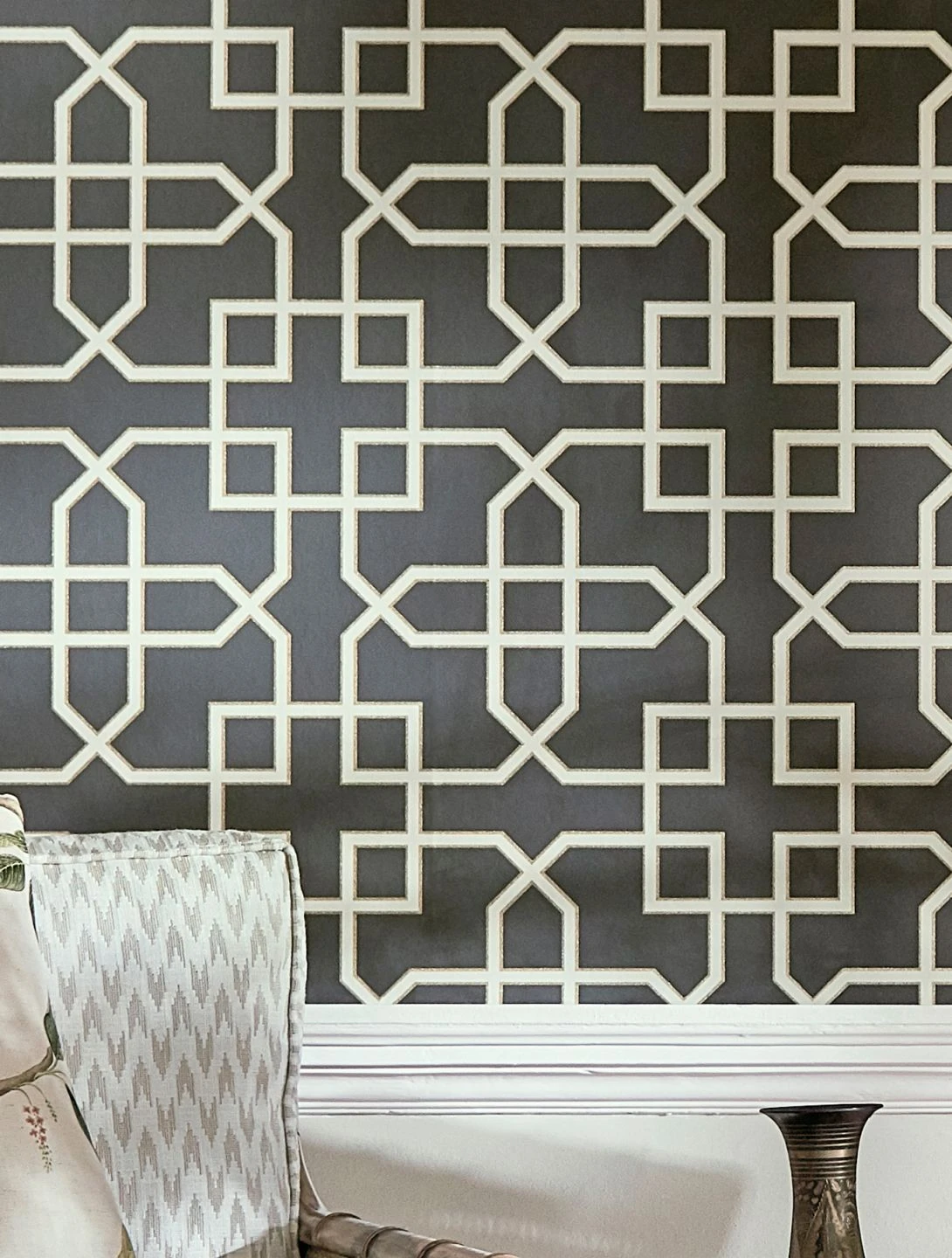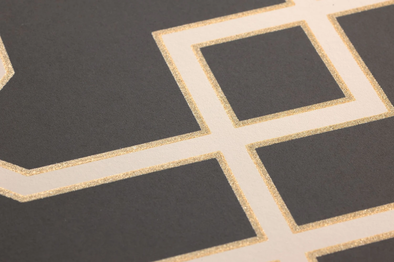Geometrie überrascht immer wieder mit beeindruckenden Musterkompositionen und Zusammensetzungen. Design Tapete Ferro setzt dabei auf die noble Farbkombination von Anthrazit mit den Musterfarben Grauweiss und Mattgold, die den illusionierenden Wirkeffekt luxuriös unterstreichen.