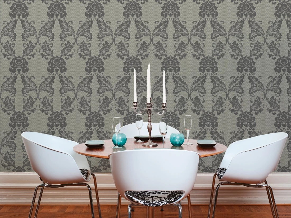 Erlesene Materialien, klassische Designs und erhabene Luxuriösität – die Tapetenkollektion Luxury Wallpaper von Architects Paper lässt Wohnräume in purer Eleganz erscheinen. Ein weicher Flock säumt die Oberfläche der Tapete 30544-4 und verleiht dem anmutigen Tapetendesign ein exklusives Erscheinungsbild. Die Farbgebung aus silber und schwarz wird von einem zarten Metallic-Effekt stilvoll akzentuiert. Kreieren Sie sich Ihren persönlichen Palast der Sinnlichkeit und erleben puren Luxus in Ihren eigenen vier Wänden.