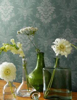 Klassische Tapetenmuster erleben ihre Renaissance immer wieder. Manche mögen es authentisch, andere erfinden Raumkonzepte, die mit der edlen Ornamenttapete eine extrovertierte Beziehung eingehen. Design Tapete Ikena in zarten Grüntönen ist für alles offen.