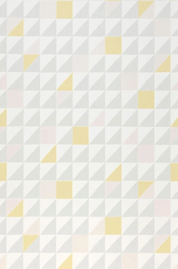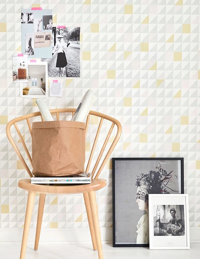 Die Geometrie Tapete des Designerlabels Majvillan ist inspiriert von den grafischen Mustern der 50er und 60er Jahre mit ihrer pastelligen Spritzigkeit. Das Musterfarbenspiel der Quadrate und Dreiecke in Cremeweiss, Grau, Hellgelb und Zartrosa versprüht nostalgische Frische in jedem Raum und wirkt gleichzeitig hochmodern.