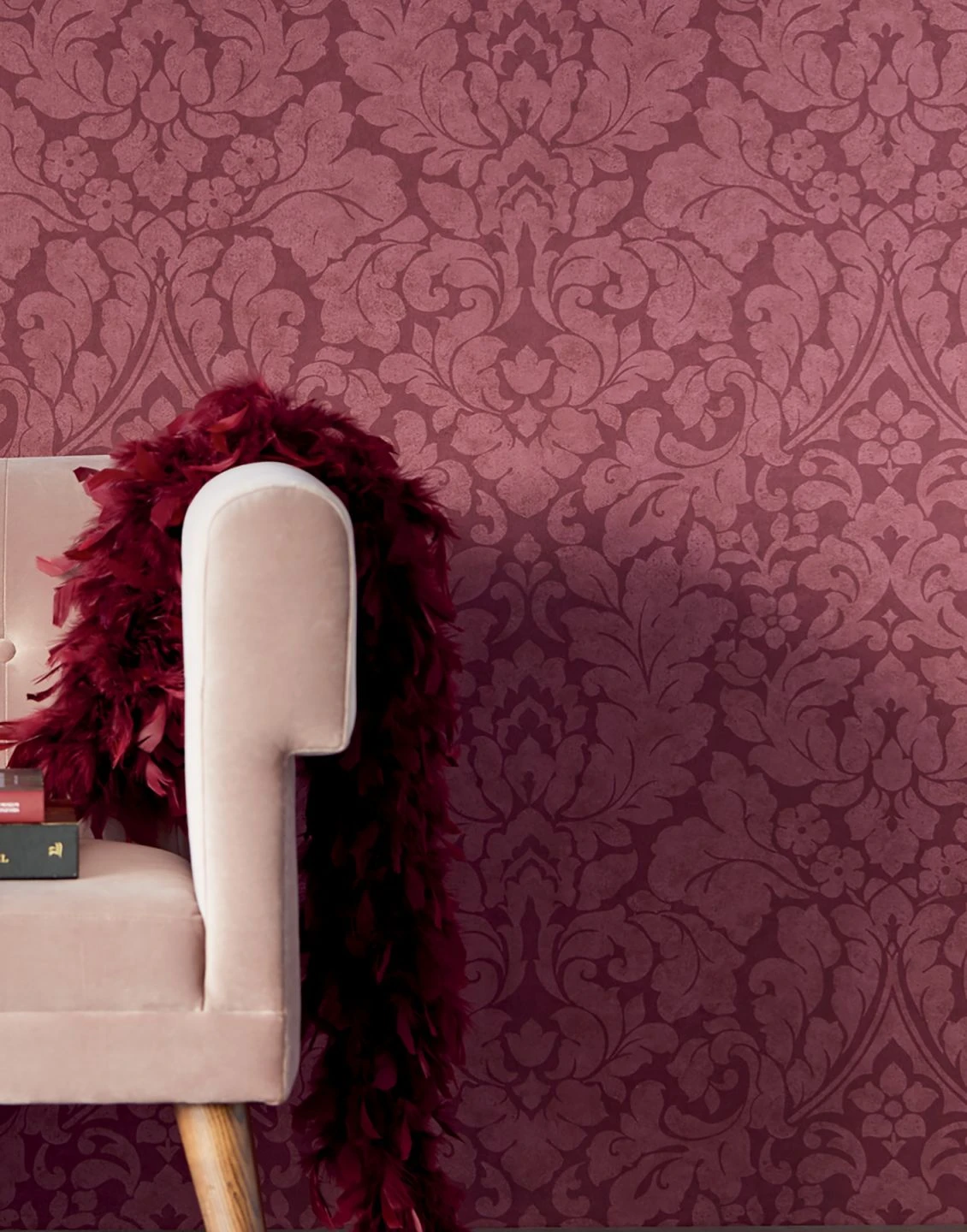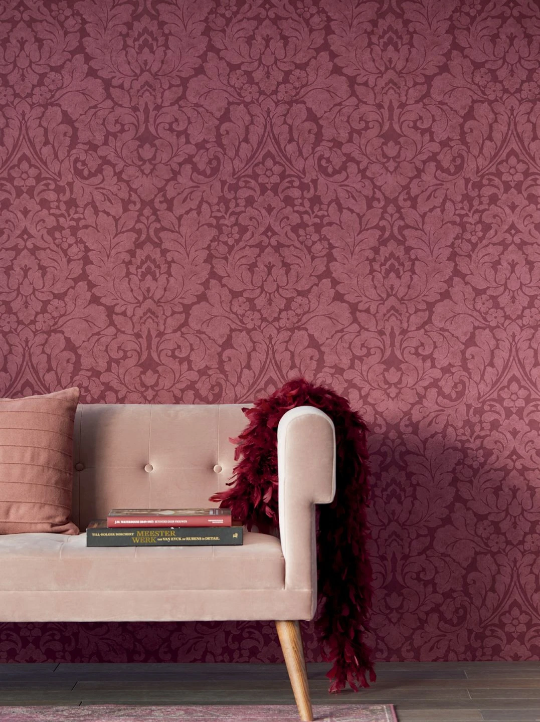 Das weinrote üppige Barockmuster, das sich aus floralen Ornamenten zusammensetzt, liebt starke helle Kontraste, die es zum Glühen bringen. Romantisch wie tiefe Liebe und erholsam wie eine Auszeit unter lauschigen Bäumen – Genuss steht bei Barocktapete Lumina im Vordergrund und der kann sich auf viele Bereiche des Lebens ausdehnen.