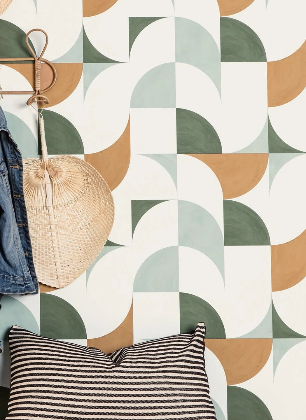 Schwung und Lockerheit bringt die geometrische Tapete Moro mit. Die geschwungenen Linien und die in angenehmem Kontrast stehenden Farben Mintgrau, Olivgrün und Orangebraun sorgen dafür, dass keine Langeweile aufkommt. Mit dem Design peppen Sie Küche, Wohnzimmer oder Flur wirkungsvoll auf oder schaffen ein tolles Ambiente in einem ebenso modernen wie gemütlichen Gastraum. Das Vinyl der Oberfläche ist scheuerbeständig und damit auch fürs Bad perfekt.