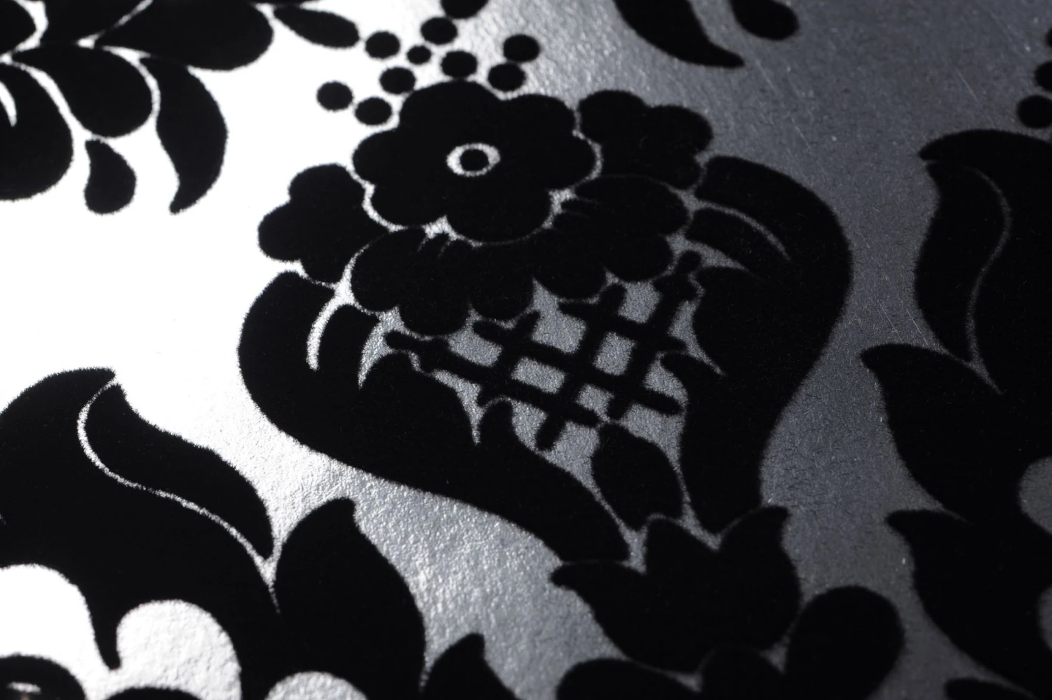 Lieben Sie ganz großes Kino? Zum Beispiel die nervenkitzelnden Werke von Oscar Wilde oder Edgar Allen Poe? Dann ist die mondäne Flocktapete in Silber Glanz und Schwarz genau die Richtige für Sie. Spannende Geschichten mit fesselnden Geheimnissen und einem Hauch von Spuk in viktorianischen Gemäuern leben mit diesem floralen Barockmuster auf.