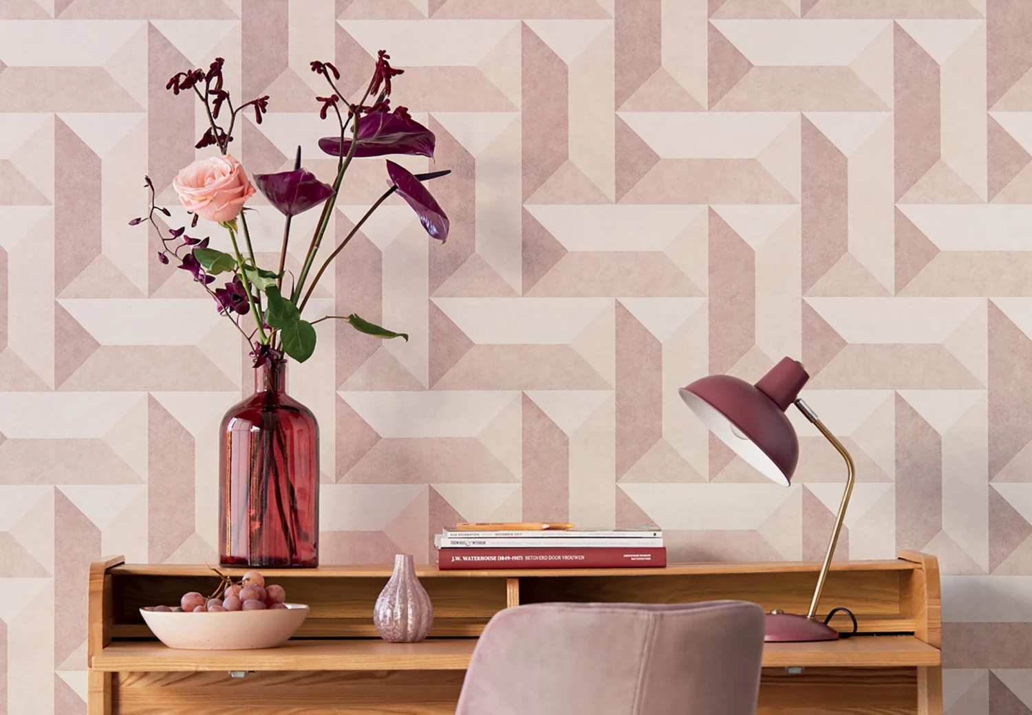 Zarte Harmonie in Rosétönen, die Räumen mehr Tiefe verleiht, ist das Markenzeichen der geometrischen Mustertapete. So wie sich die Elemente unermüdlich auf verschiedenen Ebenen fortsetzen, so können auch die Gedanken in neue Dimensionen eintauchen. Die waschbeständige Oberfläche der smarten Vliestapete kann feucht gereinigt werden.