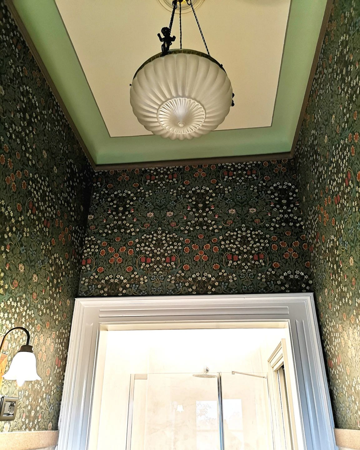 Über und über mit blühenden Blumen bedeckt ist die englische Papiertapete von der traditionsreichen Marke Morris & Co. Bunte Blütenfarben und Blätter in verschiedenen Grüntönen auf schwarzgrünem Grund schaffen eine Fülle des Lebens, die durch die fast unmerklich symmetrische Anordnung zu einer zugrundeliegenden Ordnung findet. Das verwendete Leimdruckverfahren gibt dem Blumenmuster die Anmutung von Handwerkskunst und Zeitlosigkeit.