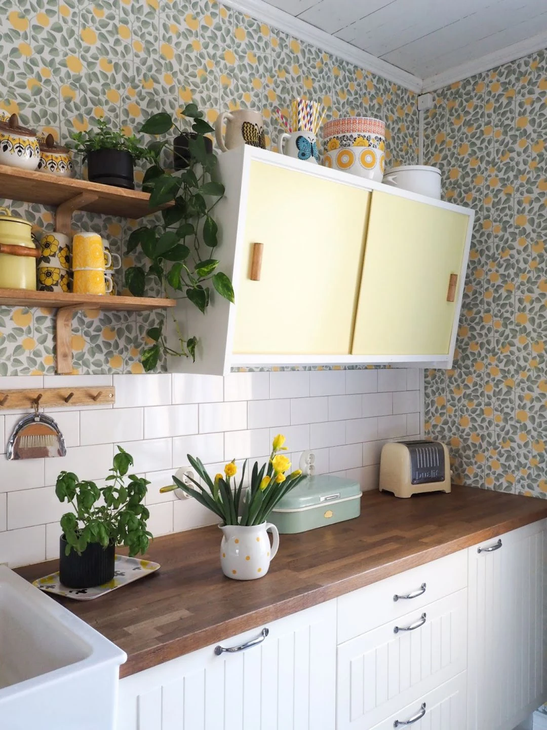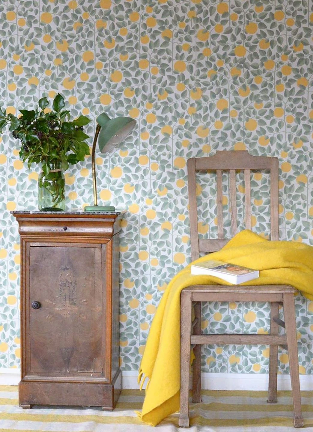 Dieser malerische Zitronenhain, dem eine gewisse Koketterie nicht abzusprechen ist, begeistert in Küche und Esszimmer durch seine herbfrische Note. Die Fülle des Musters hat gleichermaßen eine abstrakte Wirkung, wenn es mit Abstand betrachtet wird. Ein fruchtiger Vintage Look ist mit Papiertapete Valentina hervorragend umsetzbar.