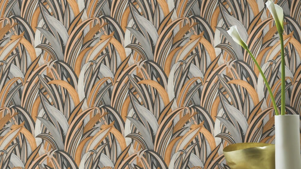 Tapete Vlies Rasch Onszelf Blätter Gräser braun grau schwarz Amazing 541274