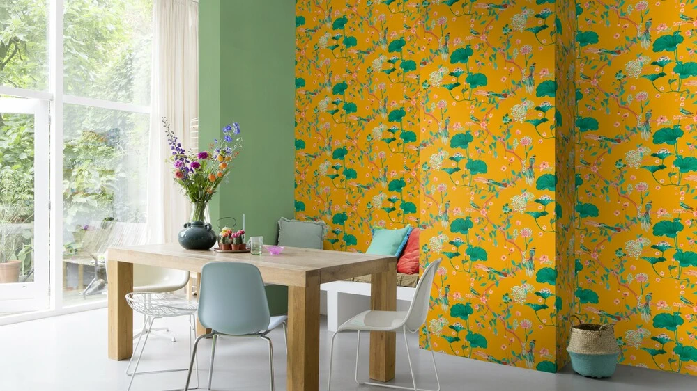 Die in dem Amsterdamer Studio Onszelf designten Tapeten von Rasch aus der Kollektion Amazing sind mit Liebe und Hingabe entworfen worden und bringen ein fröhliches Lebensgefühl in deine eigenen vier Wände. Die Vliestapete mit Zweigen und Vögel in gelb, grün und rosa ist ein schöner Hingucker und strahlt Gemütlichkeit und Geborgenheit aus.