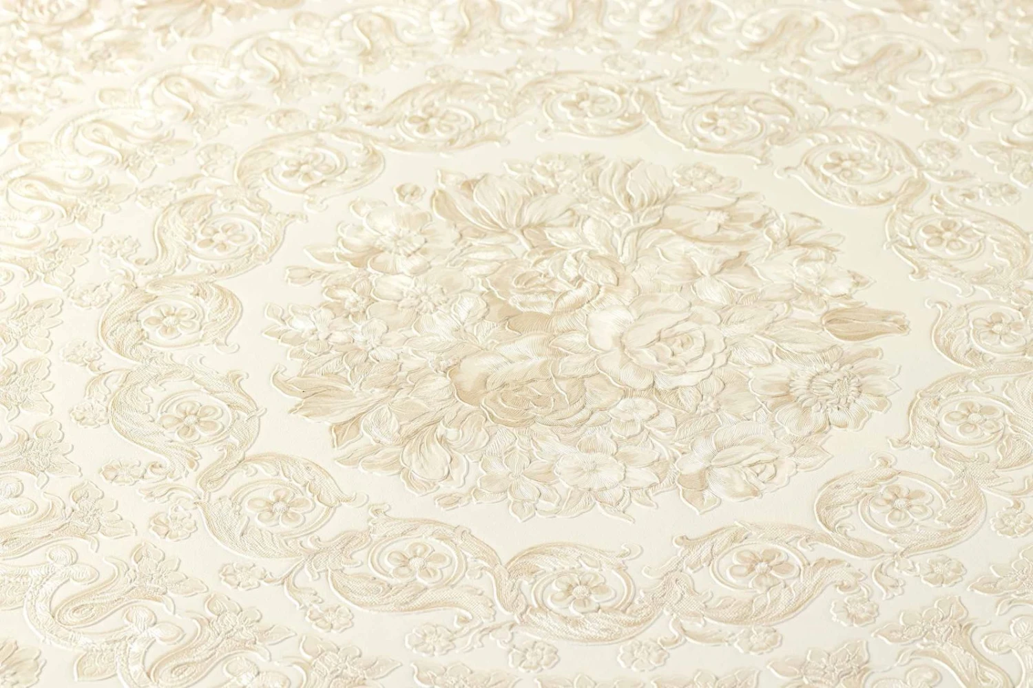 Versace Home IV Vinyltapete Große Kacheln Barock creme beige Metallic 370551 | 37055-1