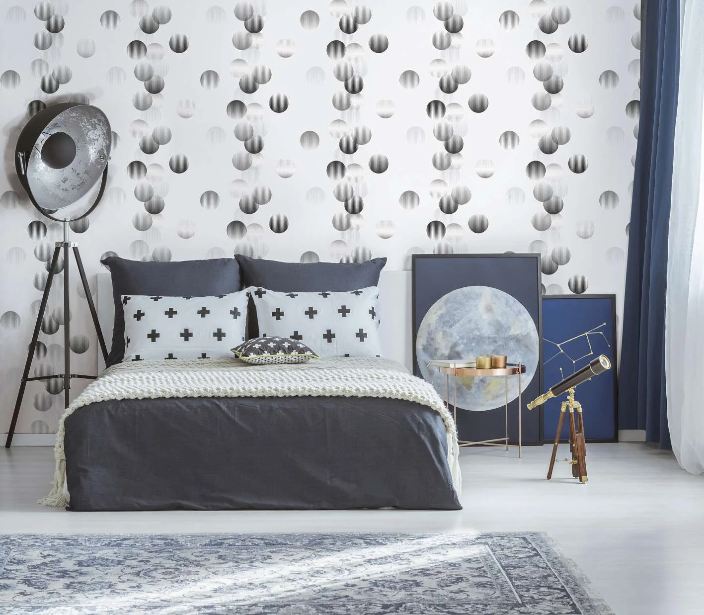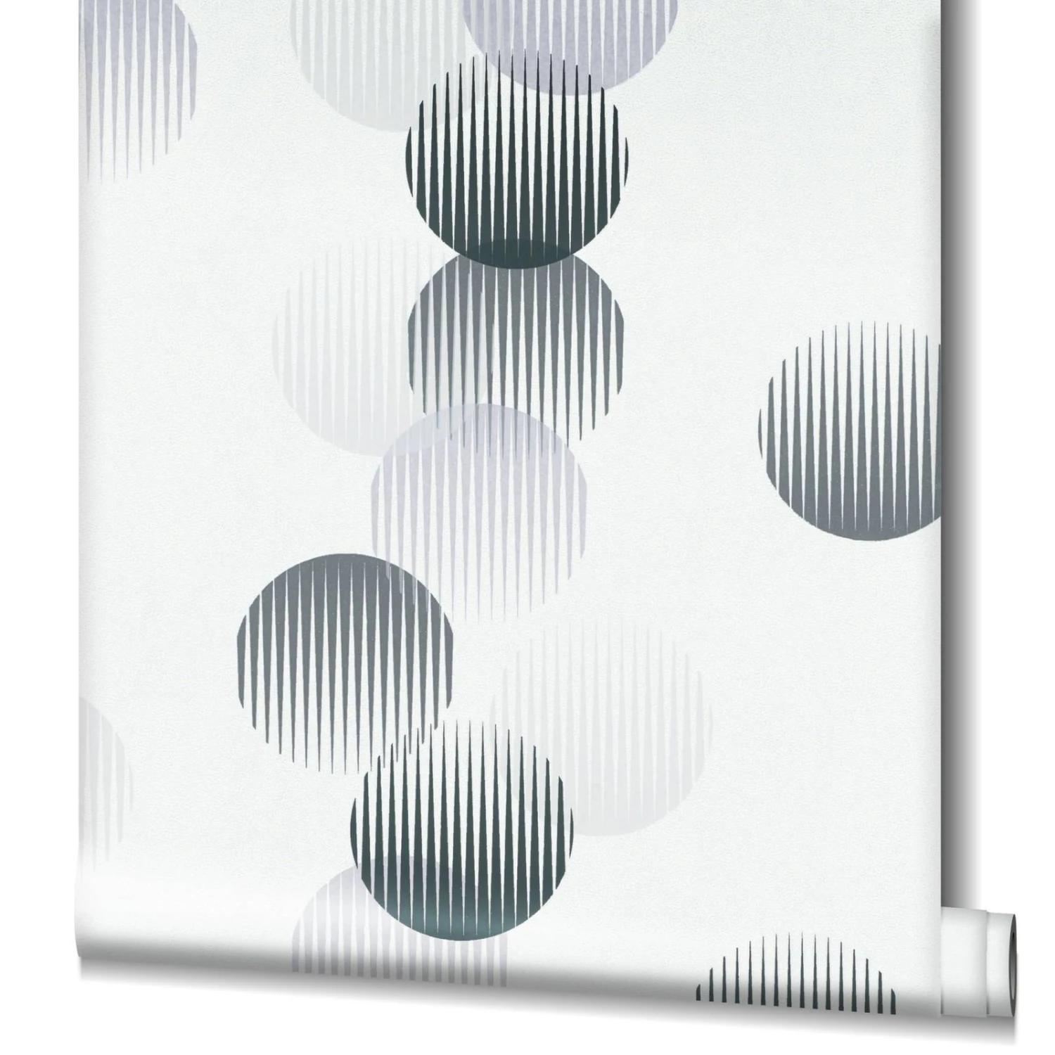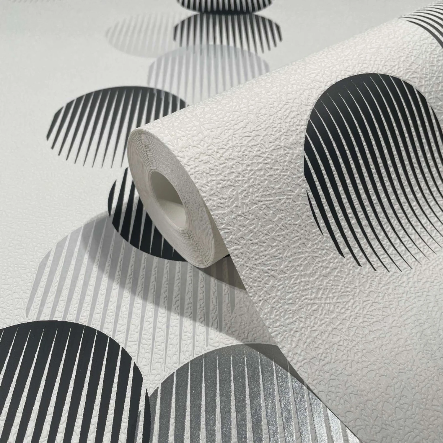 Vliestapete Novamur 82325 Weiß Schwarz Silber Kreismuster