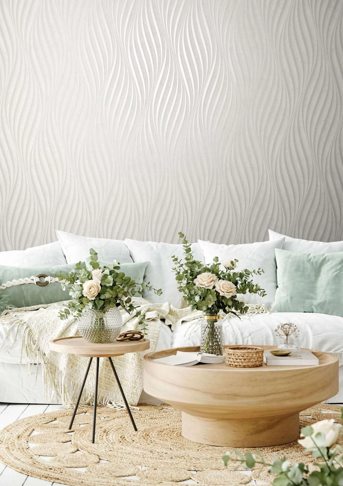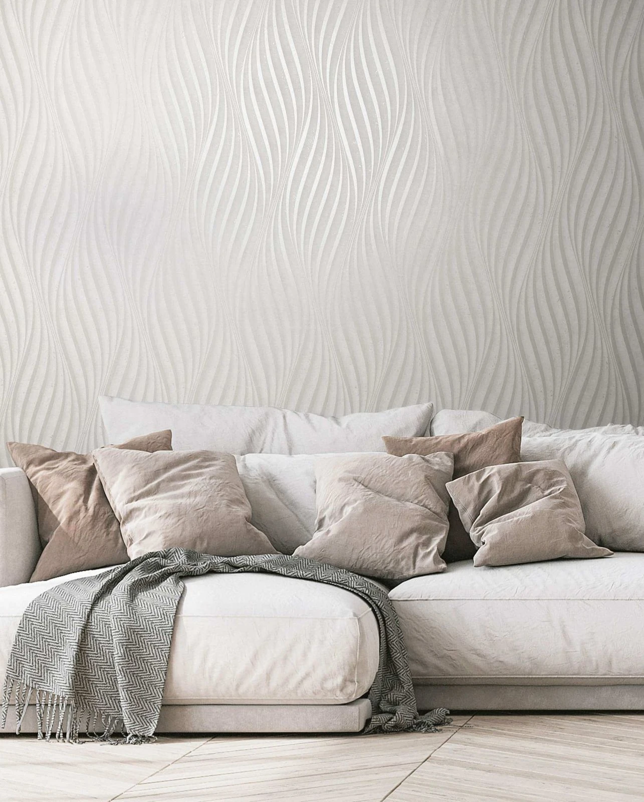 Hole dir mit den Tapeten der Kollektion City Glow von Marburg den Großstadtflair nach Hause. Die Tapeten zeigen unter anderem Blatt-, Damast- oder Wellenmuster, die gekonnt Glamour und Lässigkeit an deine Wände zaubern. Die Vliestapete 34258 zeigt ein fließendes Wellenmuster mit Glanzeffekt in Perlmutt auf einem Hintergrund in Betonoptik in weiß. Überzeuge dich auch von den weiteren Tapeten der City Glow Kollektion von Marburg und entdecke die komplette Kollektion in unserem Shop.
